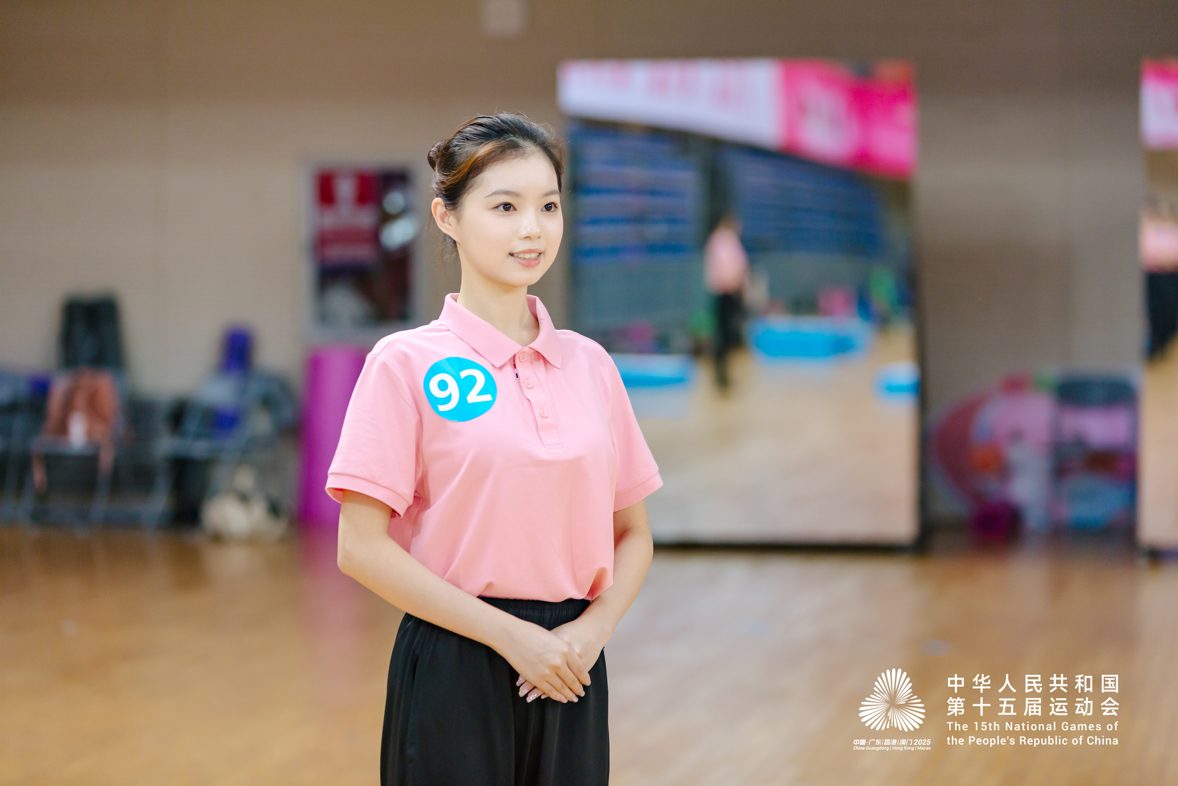 来自深圳大学心理学专业的钟晓莹,是十五运会的礼仪志愿者。一年前,当学校发出十五运会志愿者招募通知时,钟晓莹毫不犹豫地报了名。今年暑假她选择留校参加礼仪志愿者的集训,从早上8点到傍晚,日复一日地练习形体、手位、微笑和走姿。